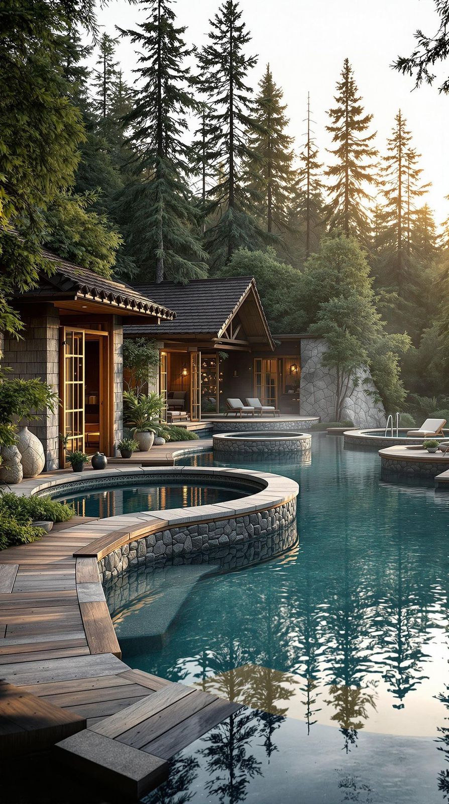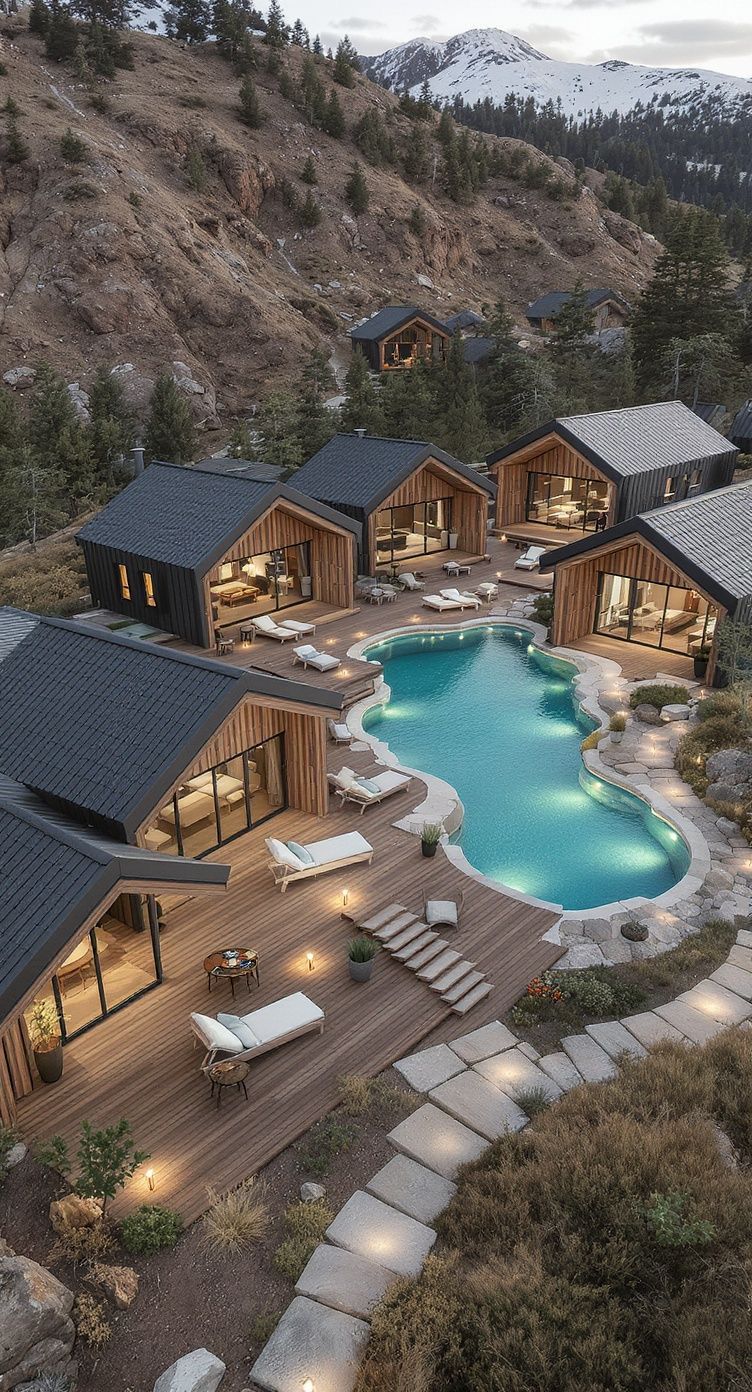- на территории отеля предусмотрены подогреваемые бассейны, банный комплекс, детская площадка, спортивные зоны, зоны барбекю и прогулочные маршруты по нацпарку